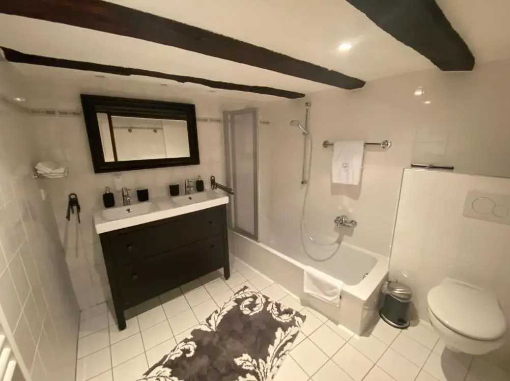 Супер дружелюбные хозяева, отличное расположение, красивое жилое пространство на нескольких этажах. Нас приветствовали и кратко проинструктировали по прибытии. Вино и игристое вино уже охладили в специально доступном холодильнике. Мы ничего не пропустили. С радостью!